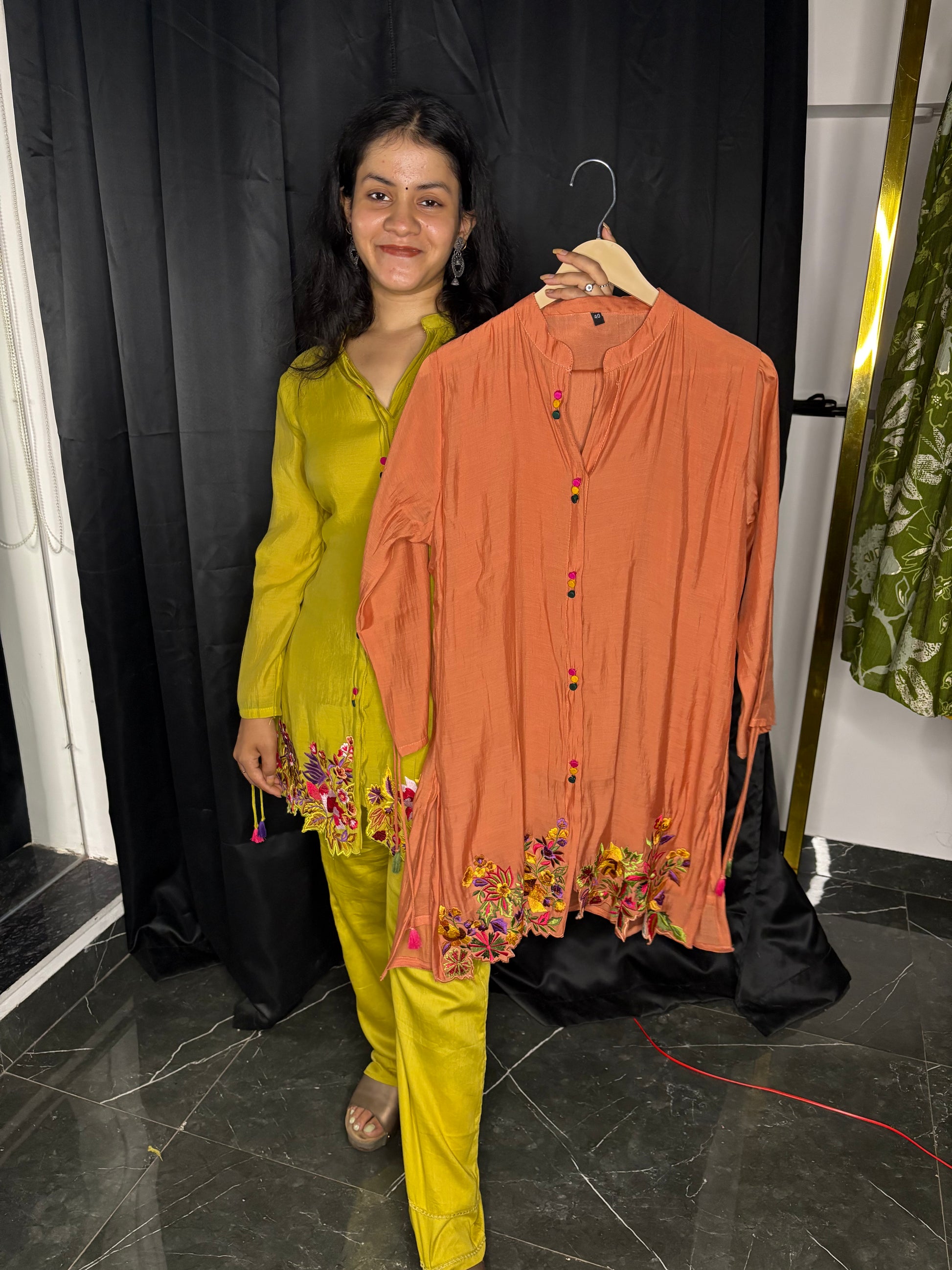 Add a touch of elegance to your everyday festive wear with this 2-piece Pure Muslin Silk cord set, crafted for effortless style and comfort.