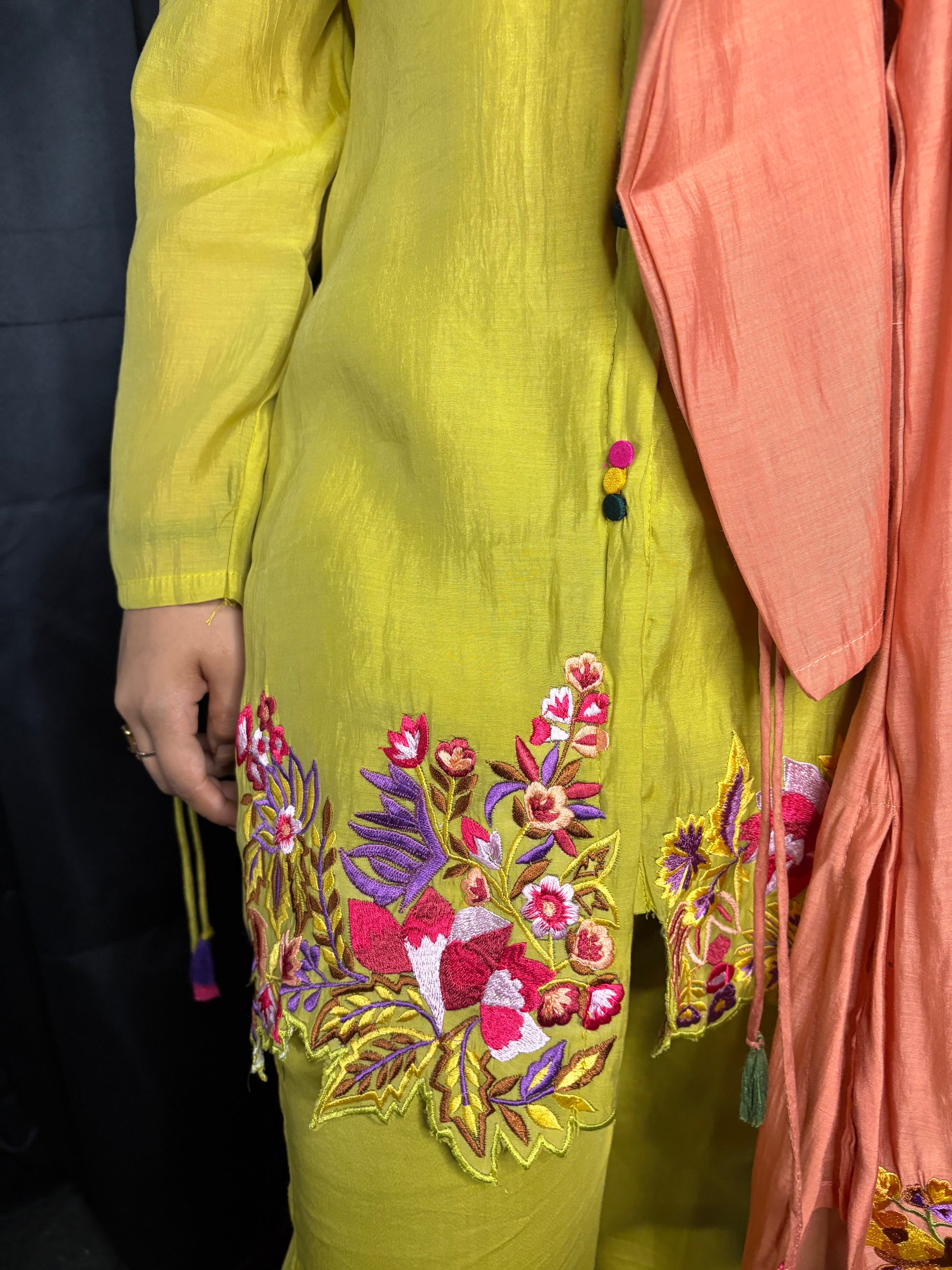 Pure Muslin Silk 2-Piece Cord Set with Cutwork & Embroidery