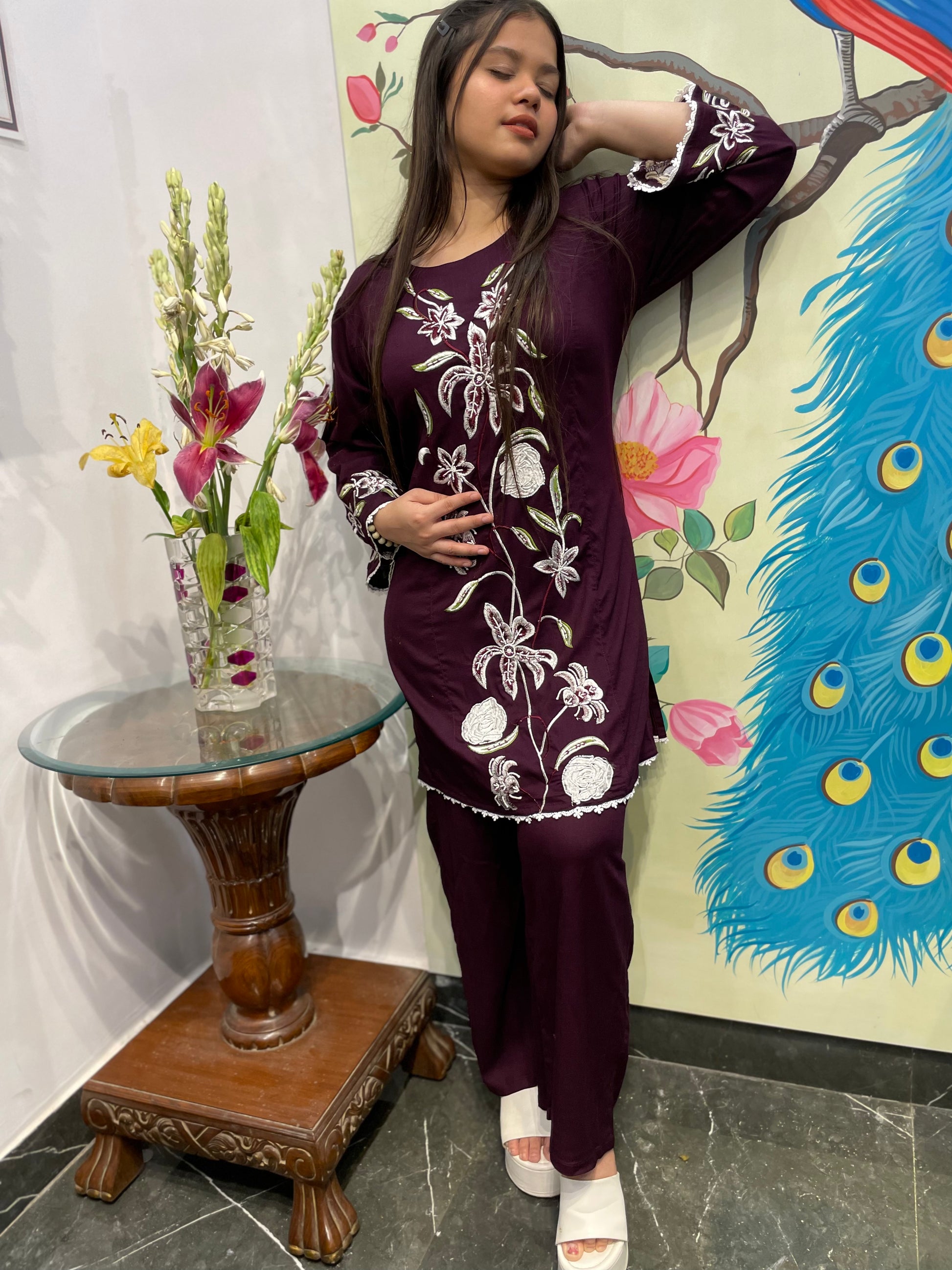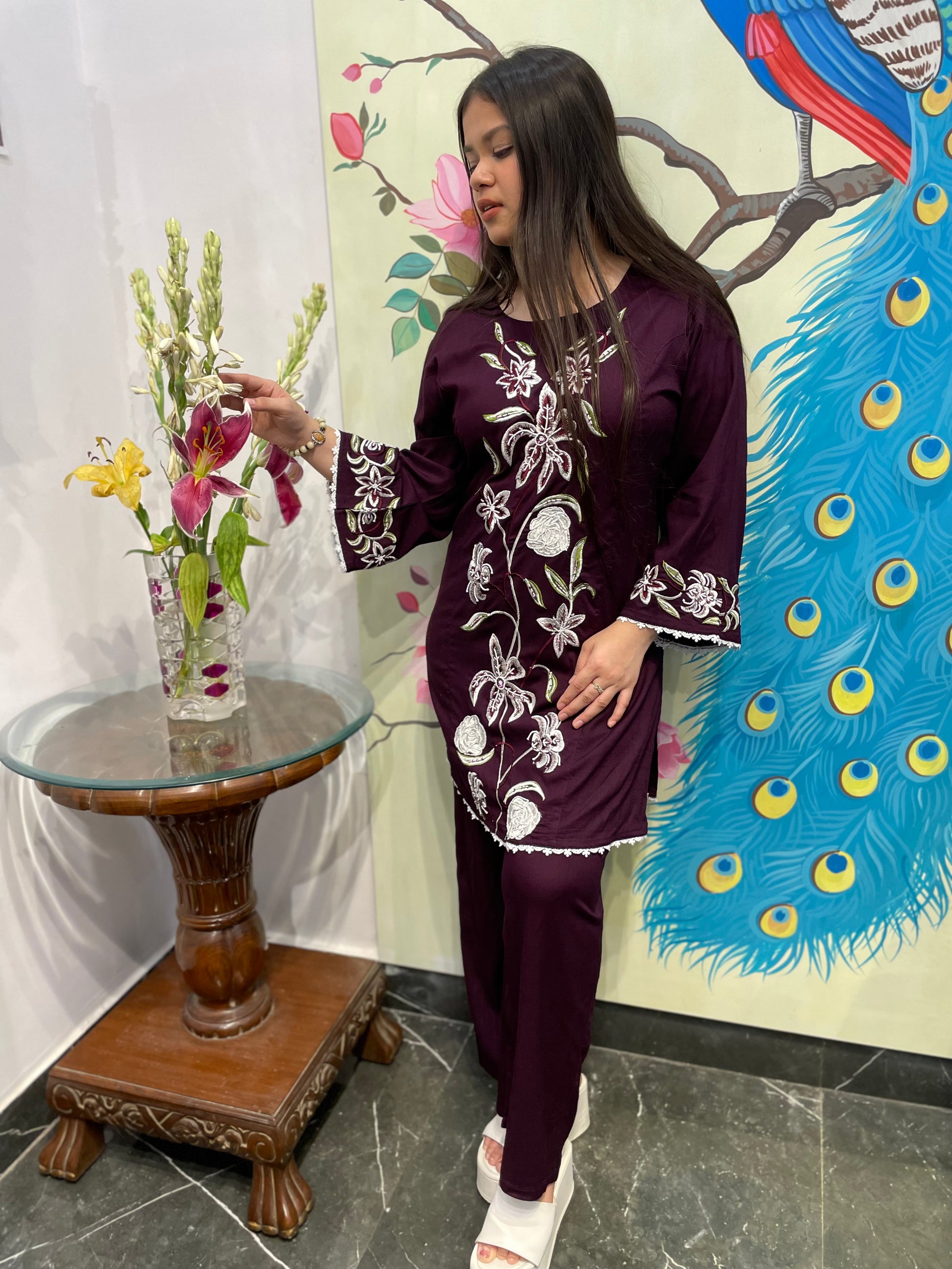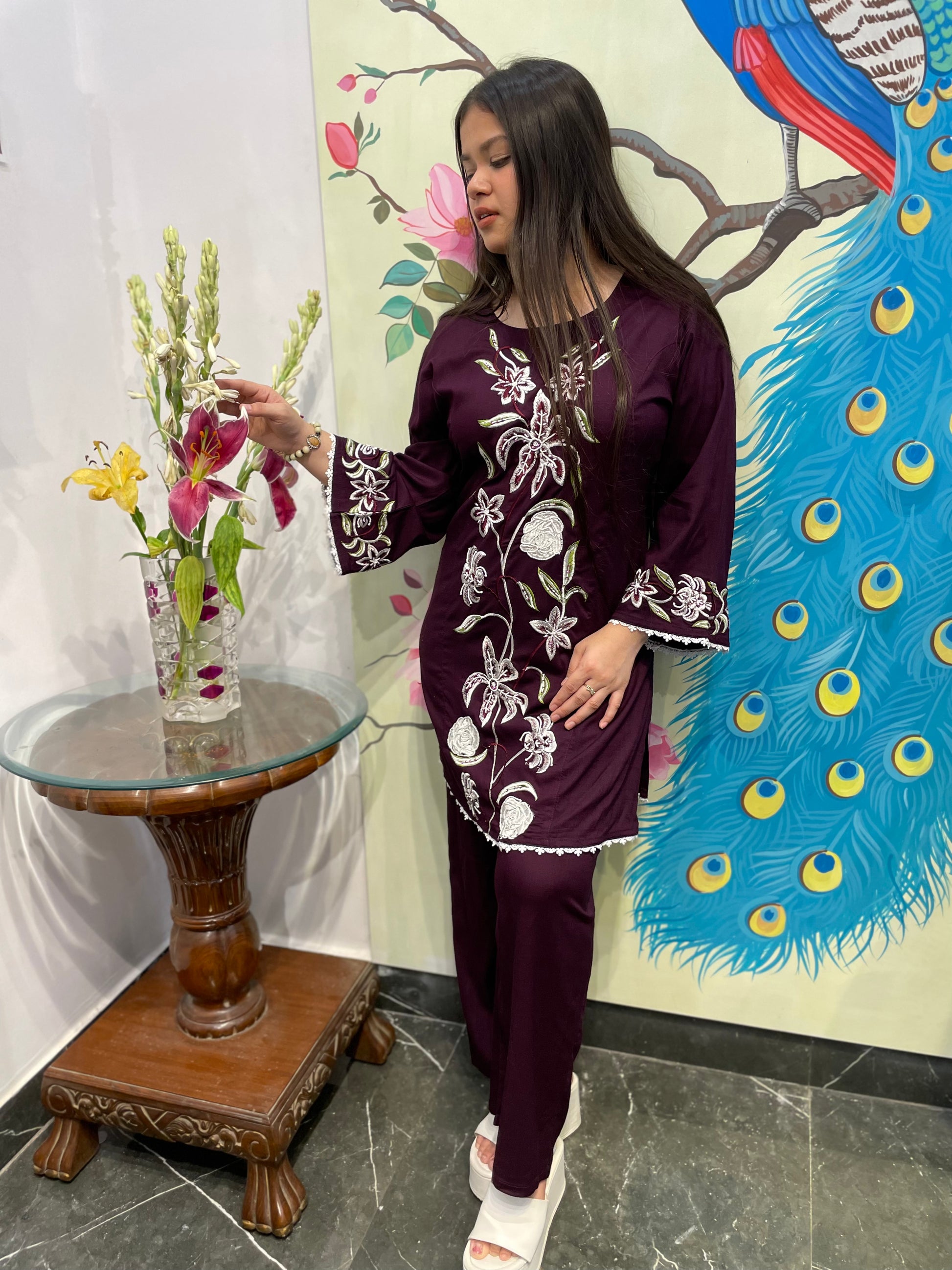 Crafted from pure soft cotton, this co-ord set effortlessly combines comfort with understated elegance. The top features intricate thread and cutdana hand embroidery, beautifully placed on the front and sleeves to add a touch of shimmer and detail. Lightweight and breathable, this set is perfect for day-to-evening wear, festive brunches, or intimate gatherings—where style meets ease.